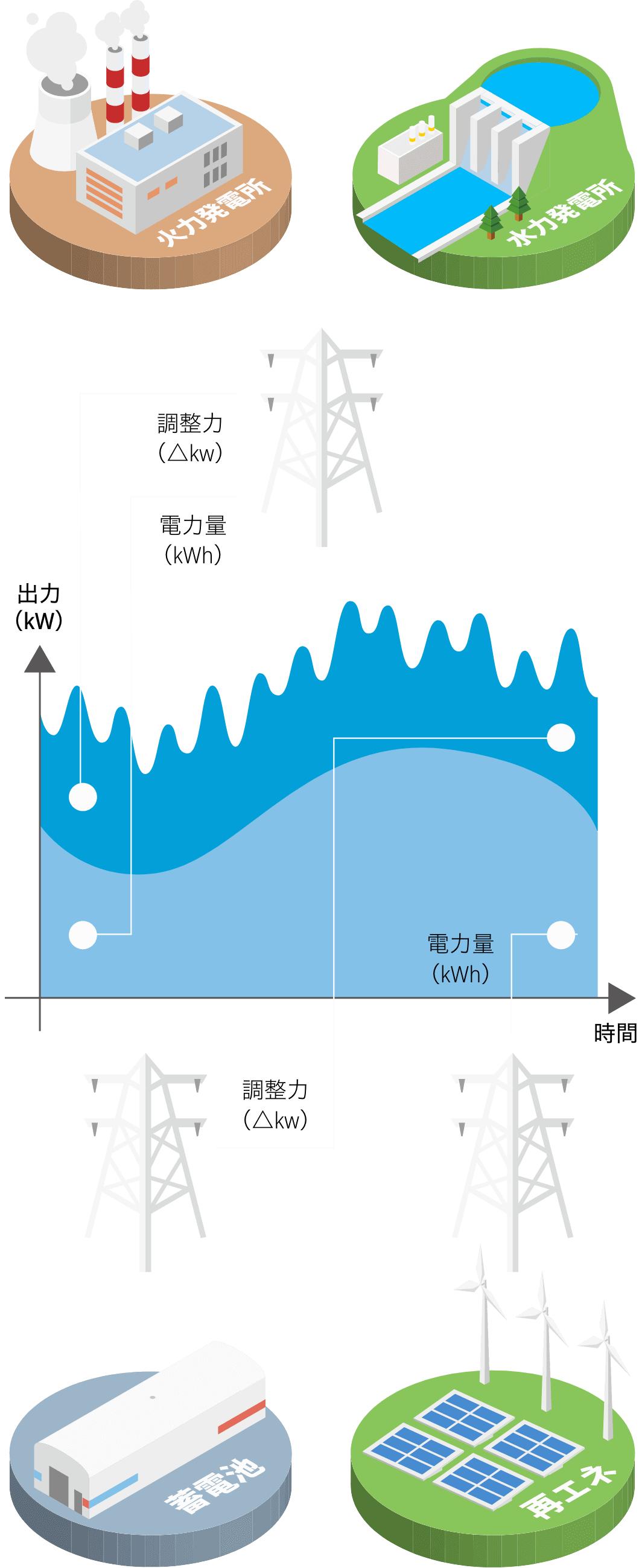 これまでは、火力発電所や水力発電所の調整機能がこの役割を担ってきましたが、